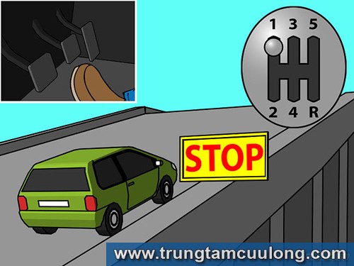 – Cách 2: Là cách các lái già thường làm trong thực tế, không dùng đến phanh tay.